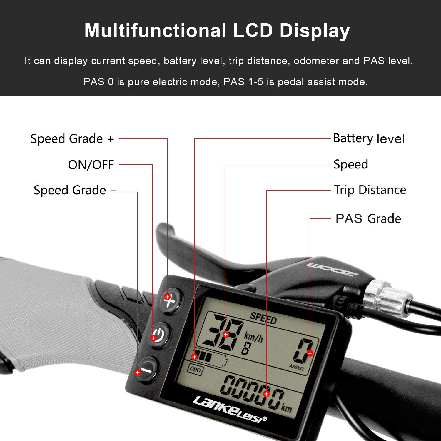 Pantalla LCD: la pantalla puede registrar su estado de conducción de manera más intuitiva, como la velocidad actual, el nivel de PAS, la distancia de viaje, el nivel de la batería, etc.