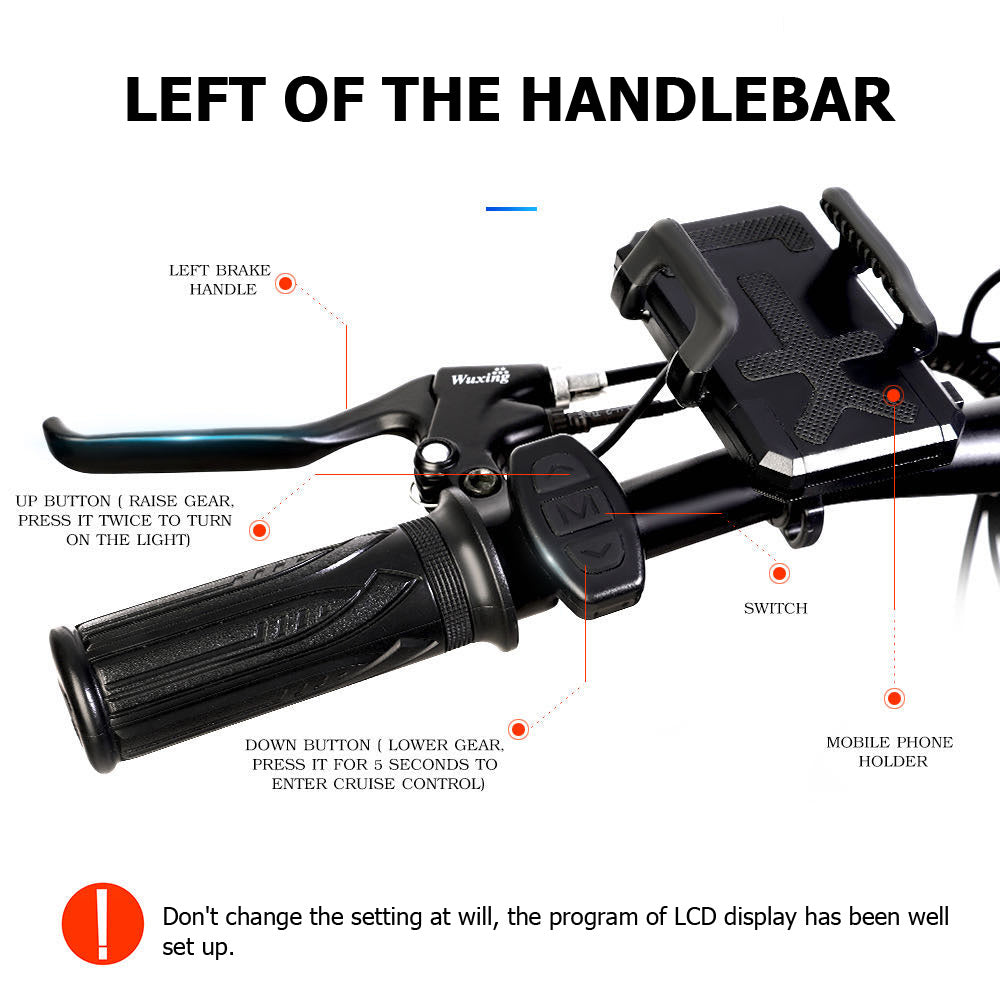 Pantalla multifunción: equipada con una pantalla LCD multifunción, para que pueda verificar los datos de conducción de manera más conveniente, como la velocidad, el nivel de la batería, el odómetro, etc.