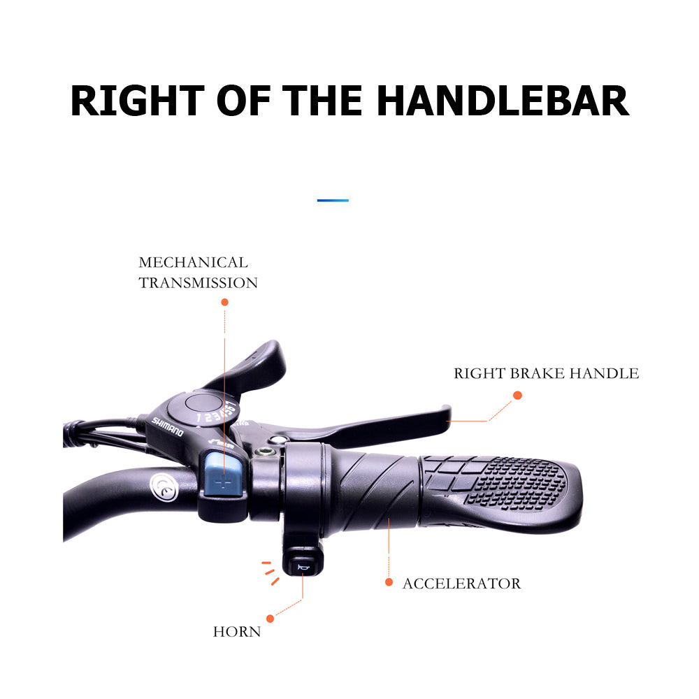 Tres modos de conducción: [Modo de asistencia de pedal]: el motor lo ayudará con potencia continua mientras pedalea la bicicleta. [Modo completamente eléctrico]: simplemente gire el acelerador (no es necesario pedalear). [Modo manual]: pisar el pedal como la bicicleta común.
