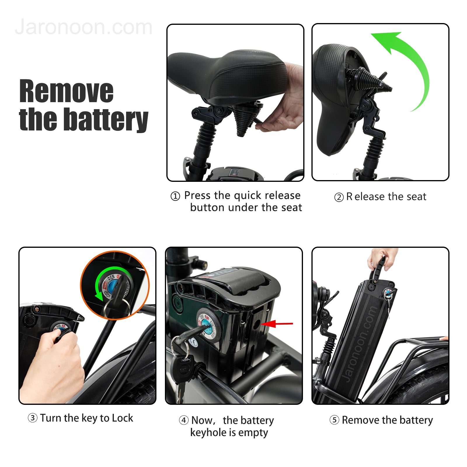 Sistema eléctrico: la bicicleta eléctrica está equipada con un motor sin escobillas estable de alta velocidad de 750 W y una batería de litio extraíble que tiene un kilometraje de larga duración. Puede cargar la batería directamente en la bicicleta o sacarla para cargarla.